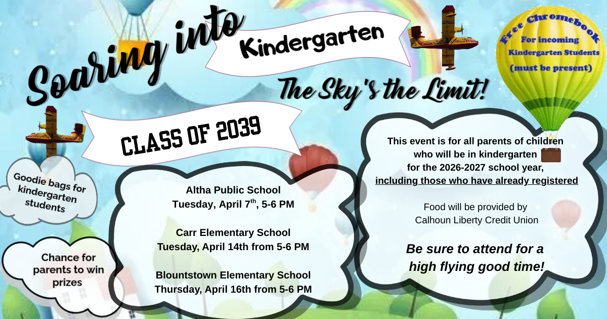 Parents of students entering kindergarten for the 2026-2027 school year are invited to attend Soaring into Kindergarten at your school. See the attached flyer for more information.